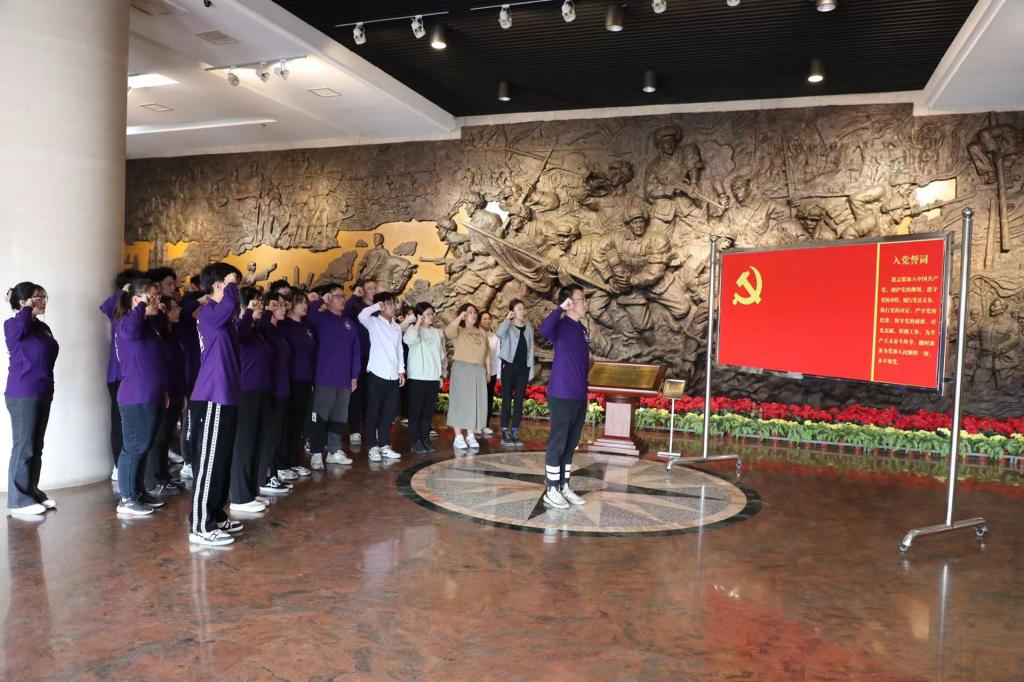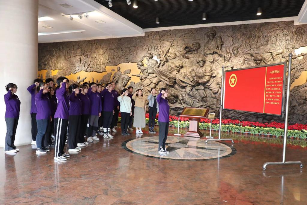 仪式结束后,师生代表在馆内工作人员的带领下参观烈士纪念馆,纪念馆内按照时间顺序分为"鏖战津门"、"浩气长存"、"献身理想"和"继往开来"四部分,集中展示了天津战役的全过程和部分革命烈士的事迹,其中中国共产党早期领导人于方舟、著名抗日爱国将领吉鸿昌、抗美援朝战争中全国著名登高英雄杨连弟等天津数位著名烈士的事迹感人至深、催人奋进。同学们在参观过程中,深刻领悟革命先烈舍生忘死、忠于国家的英雄气概,在参观实践中明白纪念是为了更好地发扬,缅怀是为了永远的传承。参观结束后,师生们共同重温入团誓词和入党誓词,用铮铮誓言表达对革命先烈的崇高敬意和对中国共产党的无比忠诚。