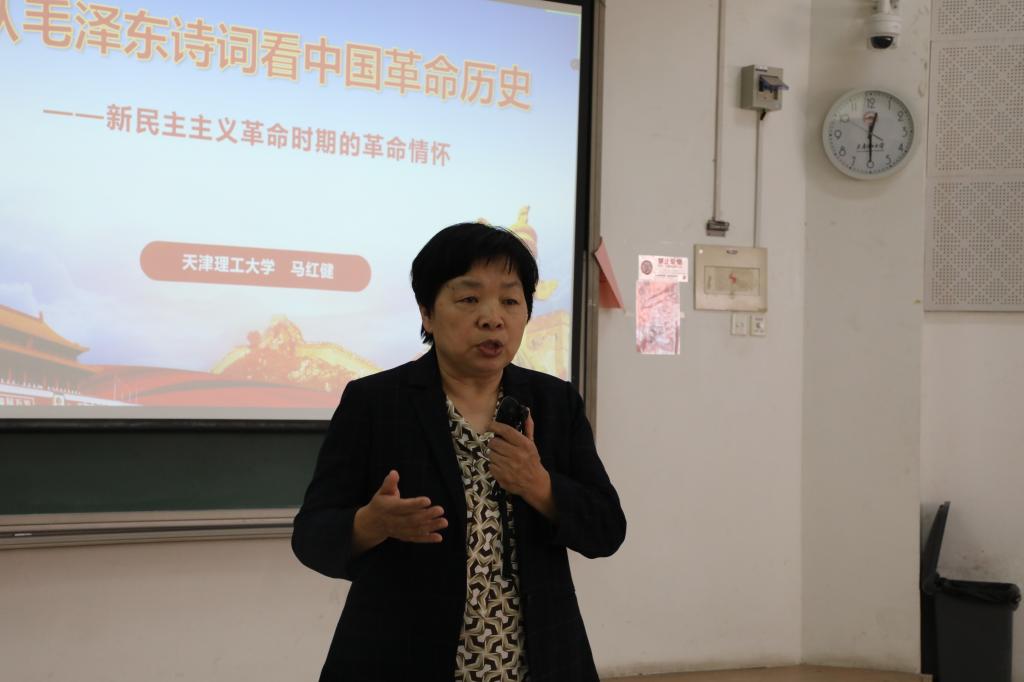 本场培训由马红健老师主讲,马老师现任伟德国际victor1946关心下一代工作委员会副主任、秘书长、“老马辅导员工作室”负责人,曾获“全国教育系统先进工作者”、“天津市三八红旗手”等荣誉。马老师从毛泽东和毛泽东思想入题,详细讲解了新民主主义革命历史,让同学们能从毛泽东诗词中学习新民主主义革命历史,鼓舞大家从中感悟信仰的力量、智慧的力量、奋斗的力量。