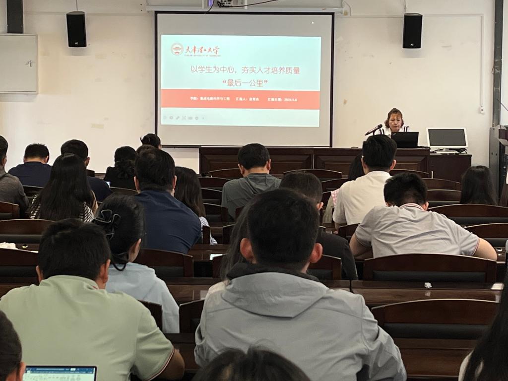 袁育杰围绕“以学生为中心,夯实人才培养质量‘最后一公里’”,从新一轮审核评估的意义、工作流程和特点,以及评建工作部署与材料准备三个方面介绍了新一轮审核评估的重要性,指出学院在自评自建过程中发现的问题,督促老师们提高认识,对标对表评估标准提升教学能力和育人水平。
