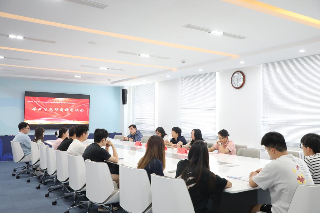 在毕业生文明离校座谈会上,同学们畅所欲言,分享了对大学生活的感悟,并对学院未来发展提出了宝贵建议。学院领导与教师代表认真倾听,并一一回应,现场气氛热烈而温馨。