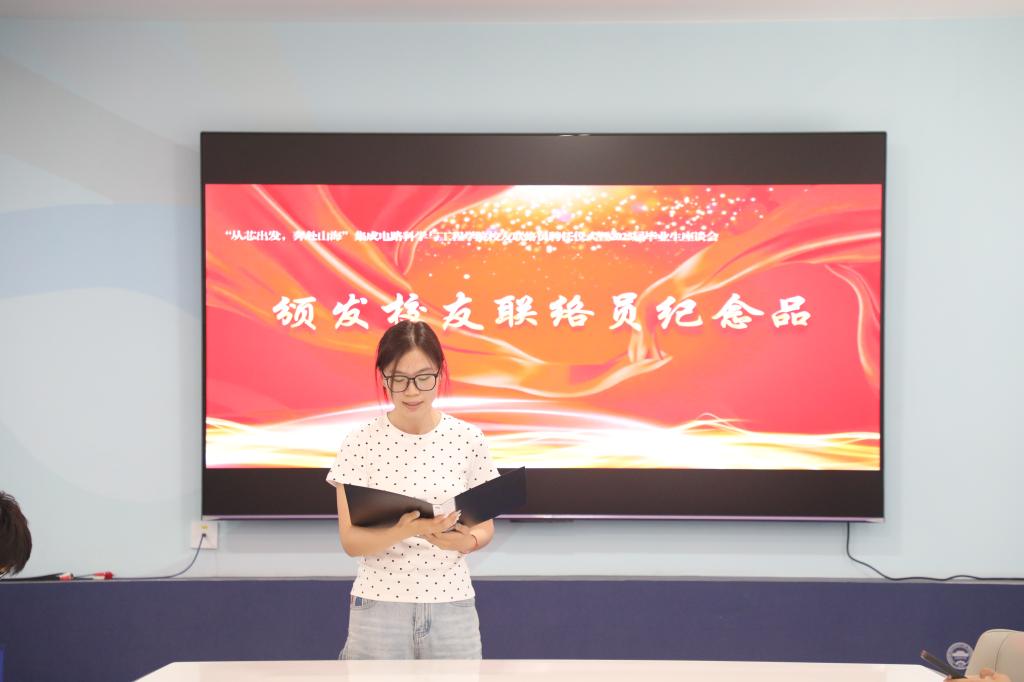 活动伊始,学院教师代表为校友联络员颁发纪念品,校友联络员作为学院与校友之间的重要纽带,未来将积极搭建沟通桥梁,助力学院发展。随后,校友联络员代表胡娜上台发言,表达了对母校的感恩之情,并承诺将认真履行联络员职责,编织好校友与班级、校友与学院、校友与学校之间情感联系的网络,为学校的不断发展贡献力量。