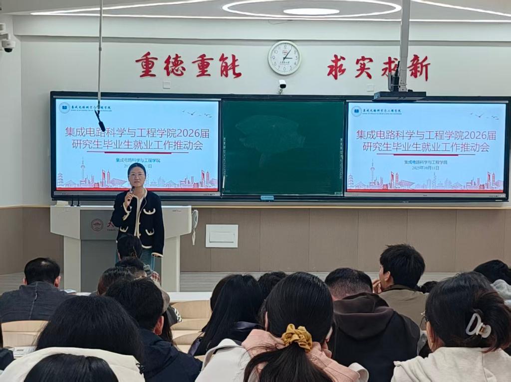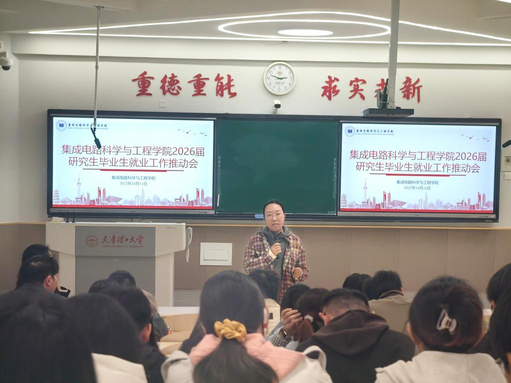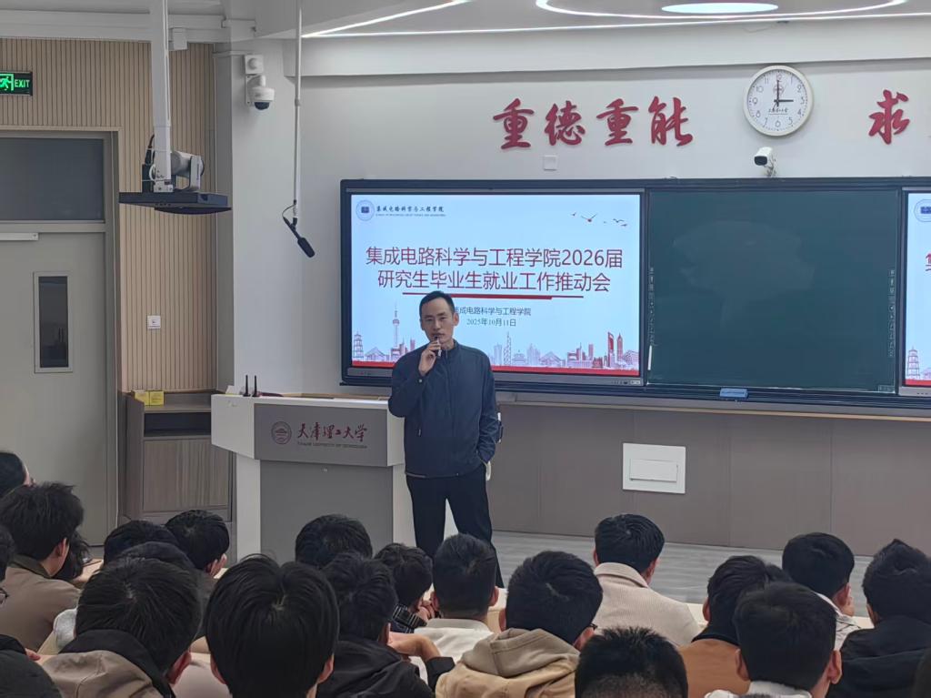 为积极应对当前就业形势,精准服务研究生就业需求,10月11日下午,伟德国际victor·1946源自召开2026届研究生就业推动会。学院副院长杨正春教授、党委副书记陈秀君老师、研究生辅导员、特邀嘉宾天津国家“芯火”双创平台指导老师及毕业班研究生参加此次会议。