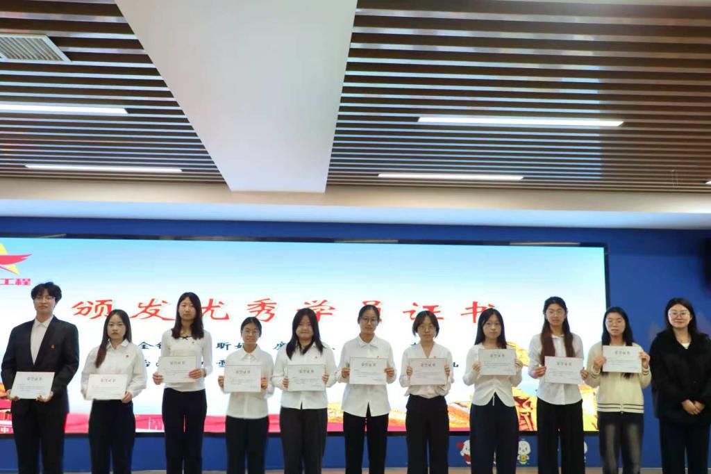 活动在庄严的国歌声中拉开序幕。随后,金宵同学带领全体学员重温入团誓词,铿锵誓言展现了学员们坚定的理想信念与青春担当。学院党委副书记陈秀君作开班动员讲话。她强调,“青马工程”旨在用真理的力量武装青年,核心在于全面提升青年学生的综合素质,目标是培养一批忠诚于党的事业、具备示范引领作用的青年政治骨干。她希望新一期学员不忘初心、牢记使命,传承红色基因,积极汲取往届学员在理论学习、实践调研、科研创新、志愿服务等方面的宝贵经验,持续发挥模范带头作用,努力成长为可堪大用、能担重任的时代新人。学院团委书记李延超为优秀学员颁发荣誉证书。